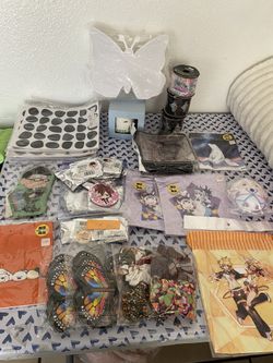 Plastic box full of keychains,pencil bags,stickers,mugs,mini backpack, and more$25North Las Vegas, NV