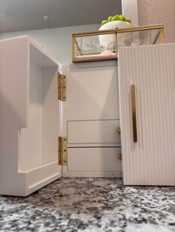 Modern White & Gold Vanity Cabinet – Jewelry/Makeup Organizer with Mirror$60Richardson, TX