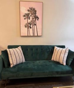 Modern Green Velvet Futon Sofa Bed, Convertible 3 Adjustable Couch Loveseat with Gold Legs ✨$230Mckinney, TX