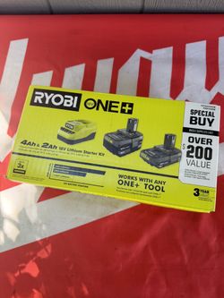 RYOBI ONE+ 18V Lithium-Ion Starter Kit with 2.0 Ah Battery, 4.0 Ah Battery, and Charger$120Irving, TX