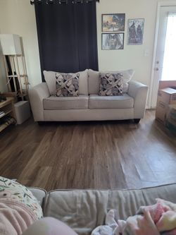 Beige Two Seat Couch Set (Two Matching Couches) With Throw Pillows$100Virginia Beach, VA