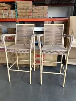 Outdoor Bar Stools Set of 2, Patio Bar Chairs with Armrests and Backrest Wicker Rattan (Beige)/(Light Gray)(Dark Gray) $80West Covina, CA