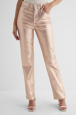 High Waisted Metallic Coated Modern Straight Pants $15Clifton, NJ
