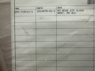 Telas. M3. Rear Qtr Glass. Assuming Rh Black $350Wakefield, MA