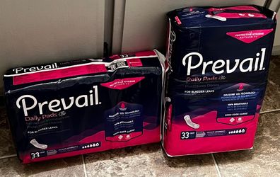 Prevail Bladder Control Pads – Ultimate Absorbency, Regular Length – 33 ct per pack – $10 each$10Hemet, CA