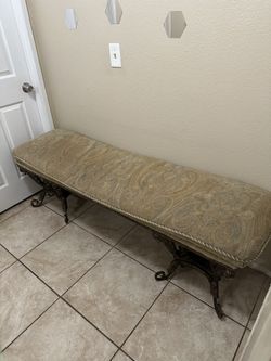 1950’s vintage traditional ornate upholstered iron bench $110Moreno Valley, CA