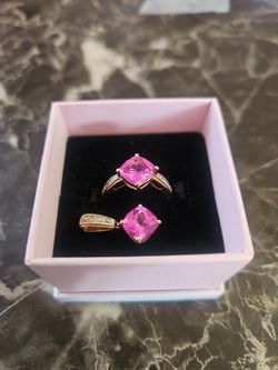 10k Yellow Gold Pink Sapphire Stone Lab Created With Diamonds Size 7 And Pendant Set$300Las Vegas, NV
