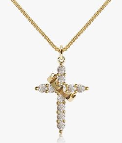 Crown Cross Necklace for Women, 14K Gold Silver Cubic Zirconia Crown Cross Necklace, Diamond Gold Silver Cross Necklaces, Dainty Cross Faith Simple Tr$10City Of Industry, CA