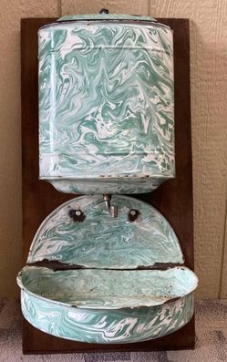 19th Century White & Soft Green Swirled Enamel French Water Tank & Basin $250Murfreesboro, TN