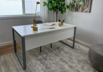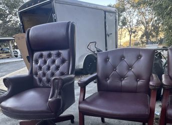 black bonded leather executive office chair with wood accents, potentially a Serta Conway model$250Orlando, FL