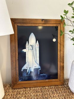 Vintage Space Rocket NASA Launch Wooden Framed Canvas Wall Art Print 24x 19” Wall Hanging Shuttle Collectible $30San Diego, CA