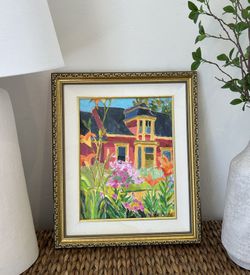 Vintage Impressionist House Painting Colorful Garden Cottage Framed Original Wall Art Bright $40San Diego, CA