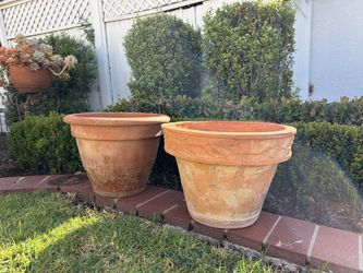 Vintage LOT 2 Terracotta plant pots weathered naturally limestone Aged Patina European Heavy VesseClay Weathered Flowers Plants Succulents Trees Both $68San Diego, CA