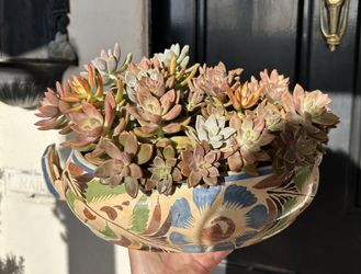 Healthy Live Real Succulents Variety Ghost Plant Flowers Rosettes Vintage Mexican Clay Pot Stand 13” Wide Garden Decor Patio Table Centerpiece $30San Diego, CA