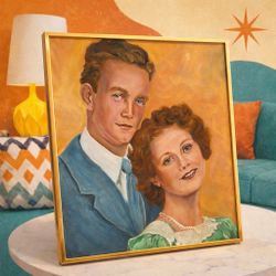 Quirky Vintage Wall Art Portrait Painting Wall Brass Frame Mid Century Retro Original Canvas 20x16” MCM $45San Diego, CA