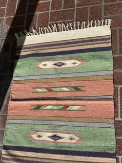 Vintage Native Rug 1950s Carpet Retro Handcrafted Floor Covering Area Rug Wool Boho Fringe 45x28”$42San Diego, CA