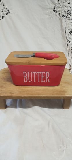 Red Butter Dish With Wooden Lid $18Bakersfield, CA
