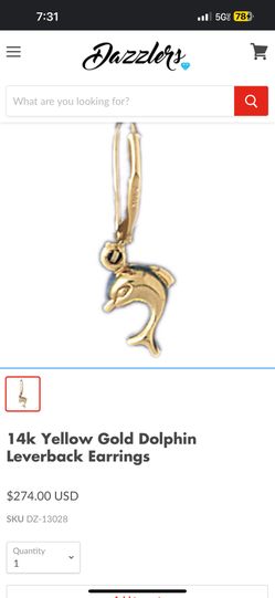 14k Gold Dolphin Lever Back Earring SINGLE $65Las Vegas, NV