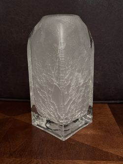 EIGHTEEN KARET Artic Ice Frosted Crackle Glass Vase 9” Tall 4”W Heavy$19Harwood, ND