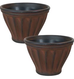 Sunnydazew Charlotte 16-Inch Indoor/Outdoor Double-Walled Polyresin Planter - UV-Resistant Rust Finish - Set of 2 $35Las Vegas, NV