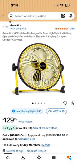 GeekAire 16inch rechargeable high velocity fan$75San Diego, CA