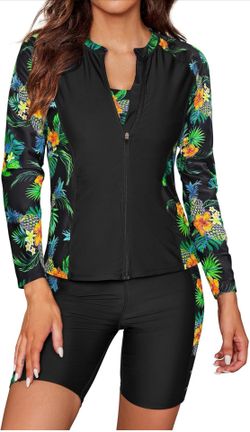 SHEKINI Women's 3 Piece Rash Guard Long Sleeve Swimsuits Zip Bathing Suits$30Pharr, TX
