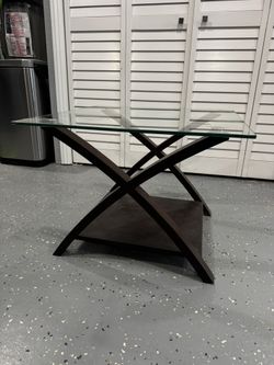 Brown Wood/Glass Top End Table (modern look)$30San Jose, CA