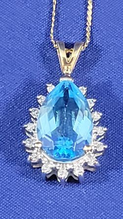 GORGEOUS BLUE TOPAZ PEAR SHAPE BIG STON AND DIMONDS PENDENT WITH 18 INCHES 14K YELLOW GOLD CHAIN $499The Villages, FL