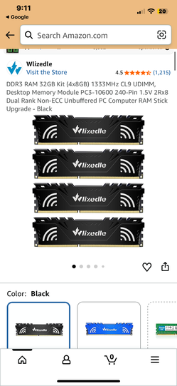 Wlizedle DDR3 32GB (4x8GB) 1600MHz UDIMM Non-ECC Unbuffered Desktop RAM Kit$70Queen Creek, AZ