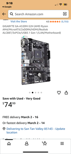 GIGABYTE GA-A320M-S2H MicroATX AM4 DDR4 Motherboard HDMI USB 3.1 PCIe M.2$50Queen Creek, AZ