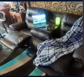 Brown Leather Recliner Couch W/ USB & Cupholders $500Oakland Park, FL
