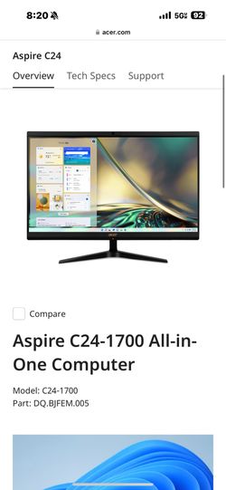Acer Aspire C24 All-in-One Desktop – 23.8” FHD – Intel i3 – Windows 11$450San Jose, CA