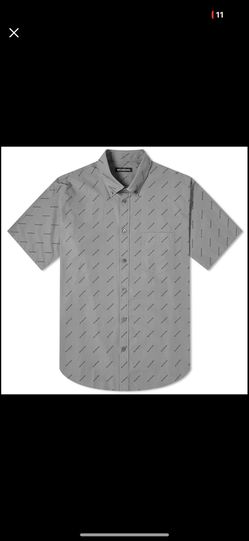 Authentic Balenciaga short sleeve button-up shirt. Gray color with all-over Balenciaga logo print. $250San Jose, CA