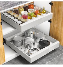 BLACK Expandable Pull Out Cabinet Drawers Organizer, Slide Out Cabinet Organizer Shelves with Adhesive Nano Film, Slide Out Drawers for Kitchen Cabine$30Des Plaines, IL