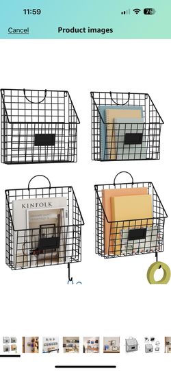 Hanging Wall File Holder Organizer Metal Wall Mount File Folders Holder Magazine Rack with Handles and Hooks , for Home Office, 4 Packs, Black$25Des Plaines, IL