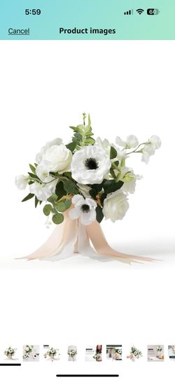 Faux Bridal Bouquet - Lifelike Silk Flowers - Matching Boutonniere – White, Green and Black Wedding Bouquet for Bride - Roses, Sweet Peas, Anemones an$25Des Plaines, IL