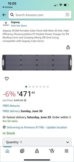 Segway SP200 Portable Solar Panel 200 Watt 20 Volt, High Efficiency Monocrystalline PV Module Power Charger for RV Rooftop Farm and Camping Hiking Off$239Rosemead, CA