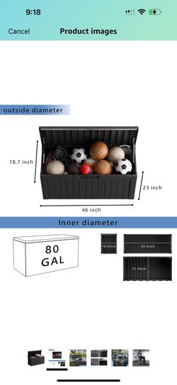 80 gallon deck box,Resin material outdoor storage box,Waterproof and UV-resistant with upgraded capacity, suitable for various indoor and outdoor sett$50Rosemead, CA