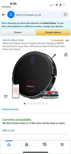 Ultenic D6s Robot Vacuum Cleaner, Vibration Mopping, 3000Pa Strong Suction, Super Slim, APP Control, Ideal for Pet Hair, Hard Floors and Carpets$69Rosemead, CA