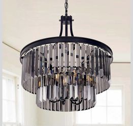 Wellmet Black Crystal Chandeliers, 5 Light Farmhouse Chandeliers for Dining Room, Hanging Light Fixture with Grey Crystal, 2 Tiers Ceiling Lights for $80Las Vegas, NV
