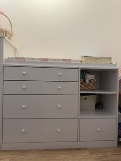 FUFU&GAGA5-Drawers White Wood Dresser Vanity Table Chest of Drawers Storage Cabinet with Shelf 36.1 in. H x 47.2 W x 19.7 D$135Shadow Hills, CA