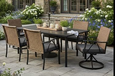 6-Piece Patio Dining Set, 7-Piece Outdoor Table with Wicker Swivels, Consisting of Chairs with Cushions and Black Rectangular Table Top with 1.75" Zon$350Lake View Terrace, CA