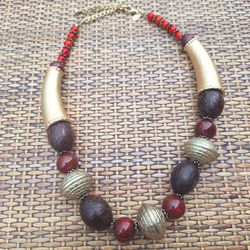 Chicos Bold Statement Piece Necklace Chunky Eceltic Jewelry Natural Gold Tones Red$15Carlisle, PA