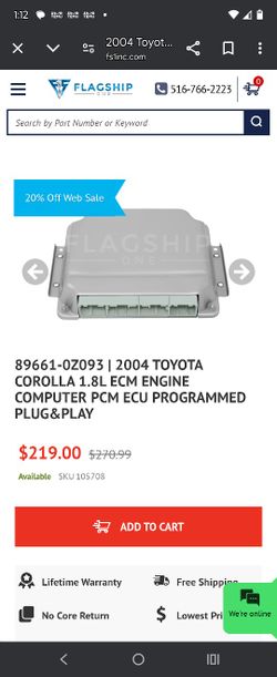 2004 Toyota Corolla ECM Engine Computer$150Riverside, CA