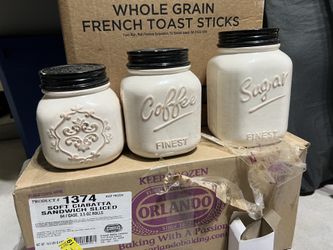 ceramic kitchen storage jars with black lids$15Anna, TX