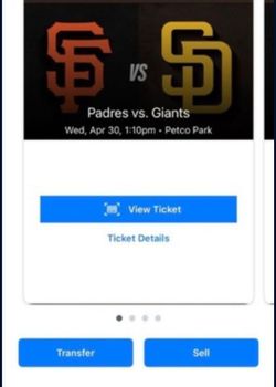 Padres Vs Giants 4/30 Today 110pm$15San Diego, CA