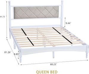 Queen Bed Frame with Fabric Upholstered Headboard, Solid Rubber Wood Foundation , Rustic Oak/White $80West Covina, CA