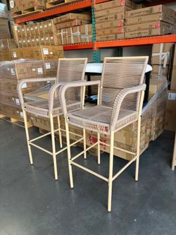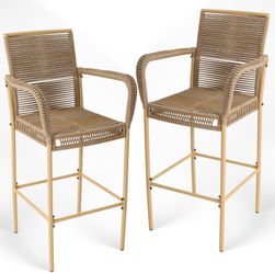 Outdoor Bar Stools Set of 2, Patio Bar Chairs with Armrests and Backrest Wicker Rattan (Beige)$80West Covina, CA