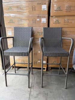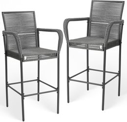 Outdoor Bar Stools Set of 2, Patio Bar Chairs with Armrests and Backrest Wicker Rattan (Dark Gray)$80Covina, CA