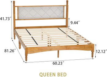 Queen Bed Frame with Fabric Upholstered Headboard, Solid Rubber Wood Foundation , Rustic Oak/White$80West Covina, CA